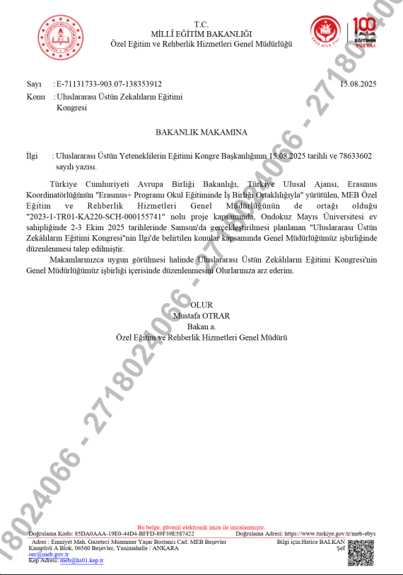 Milli Eğitim Bakanlığı İşbirlik Onay Yazısı